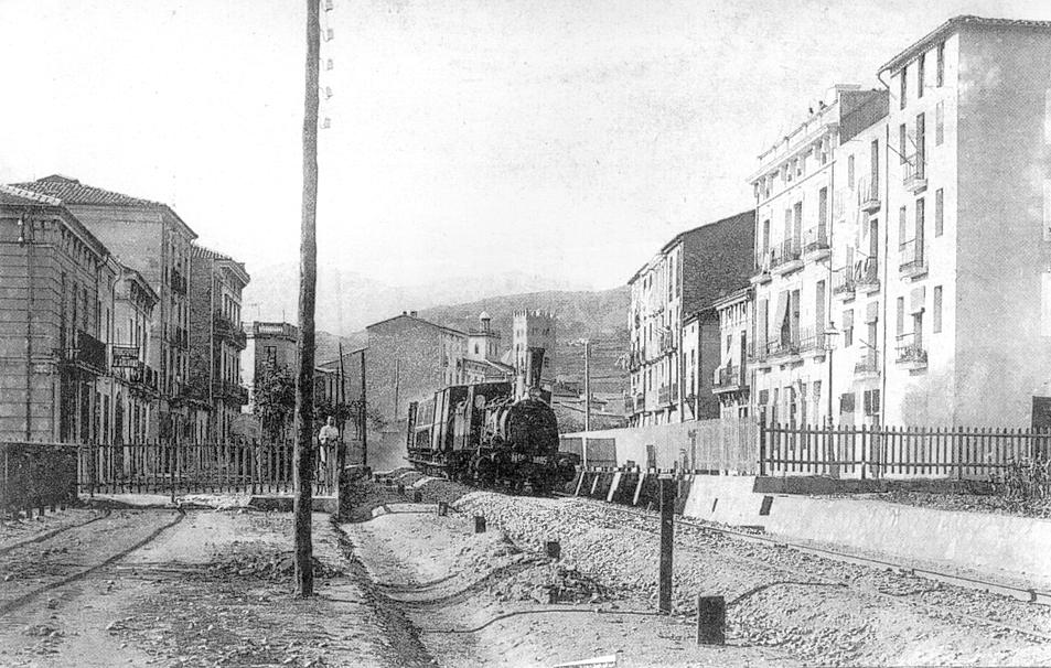 Vista de Ripoll. Estacion de los Ferrocariles Transpirenaicos, situada al final del paseo de San Juan. Foto